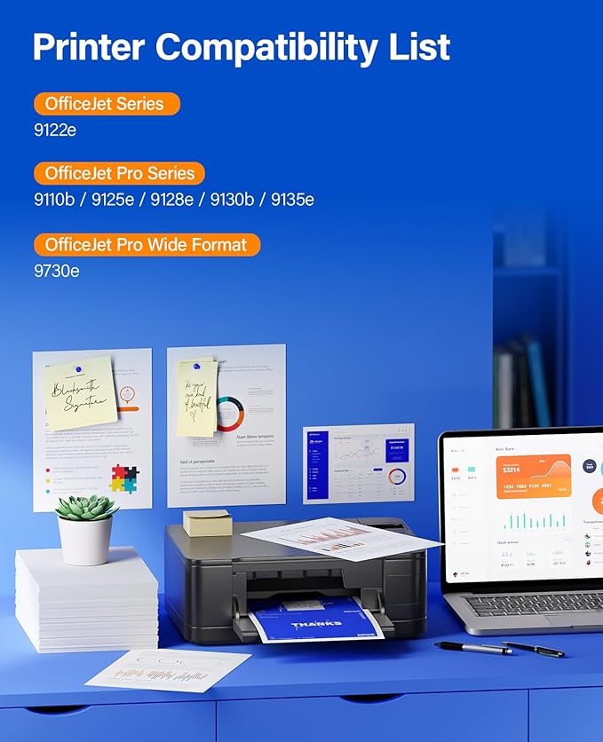 - Compatible Printer: Compatible for HP OfficeJet 9122e;HP OfficeJet Pro 9110b,9125e,9128e,9130b,9135e;HP OfficeJet Pro Wide Format 9730e Printers.