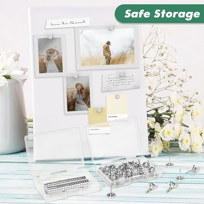 - 【Package Includes】You will get 60 sets of silver thumbtacks. A sufficient quantity can meet your different needs, and these are a great alternative to pins or tape. The pin part of the push pin is thicker and more sturdy than your standard push pins. In addition, the no magnetic thumbtacks and magnets are packed separately in two plastic boxes for your convenience in taking and storing.
