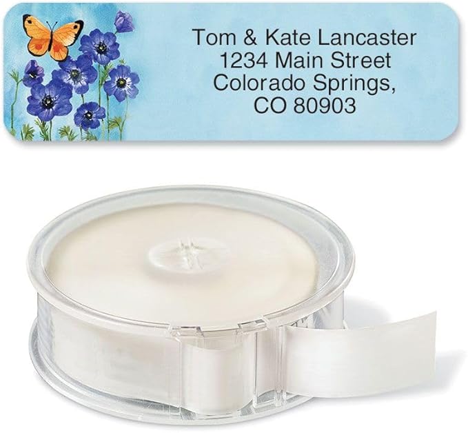 Colorful Images Floral Wings Rolled Personalized Return Address Mailing Labels with Dispenser, 5 Designs, Set of 250, Small ¾ x 2½ Inch Size, Custom Self-Adhesive Sticker Roll