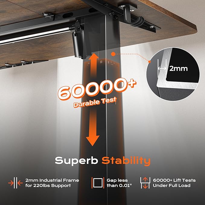 - 【Built to Last with Exceptional Stability】The industrial-grade steel frame and T-shaped design of the stand up desk support up to 220 lbs, ensuring stability and reliability for years to come. Paired with a durable motor, this home office desk is designed to meet the demands of your dynamic workday