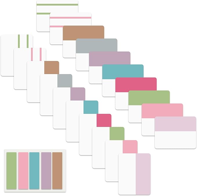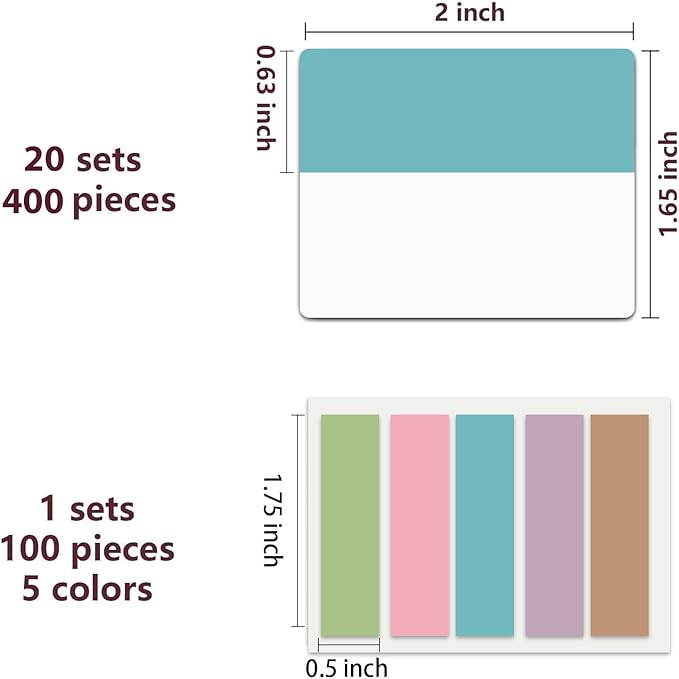 - Package Contents: 500 pieces 21 sets in total, 400 pieces 2 inch sticky tabs in 20 sets with 10 different pastle colors,100 pieces 0.5 in tabs in 1sets, 20 pieces each color