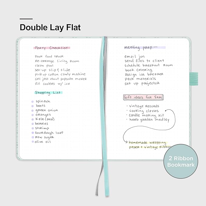 - 180° LAY-FLAT DESIGN: The lay-flat design allows for easy writing and ensures that you can utilize every page efficiently. Journaling, note-taking and planning has never been easier! 2 Bookmarks to help you find important content faster
