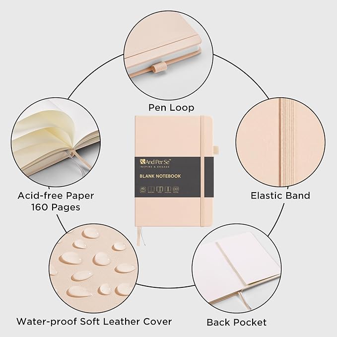 &And Per Se Blank Journal Notebook, 160 Pages, 5.7 x 8 inches College Ruled Thick Paper Notebook Journals for Writing, Hardcover Notebook(1 Pack, Light Apricot)