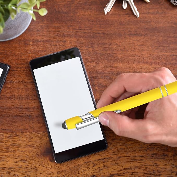 24 Pcs Blue Ink Ballpoint Pen with Stylus Tip 2 in 1 Ballpoint Pen 1.0 mm Blue Ink Metal Stylus Pen for Touch Screens Coworkers, Family, Colleagues, Office (Yellow)