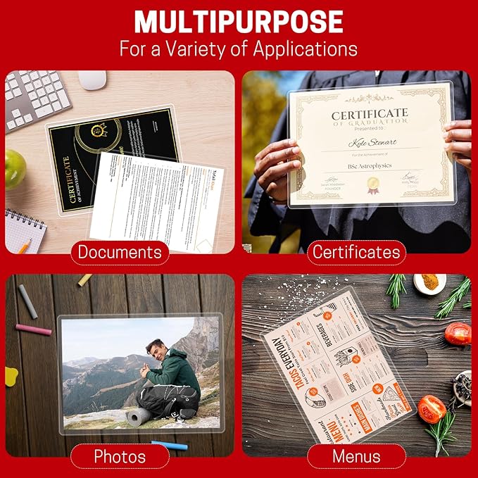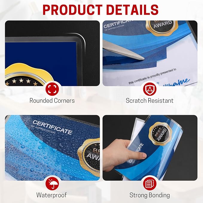 - Application:Perfect for protecting certificates,signs,photos,awards,calendars,kids artworks.It can seal and protect your documents it can be used in classroom, home and office.Compatible with all thermal laminator machine brands