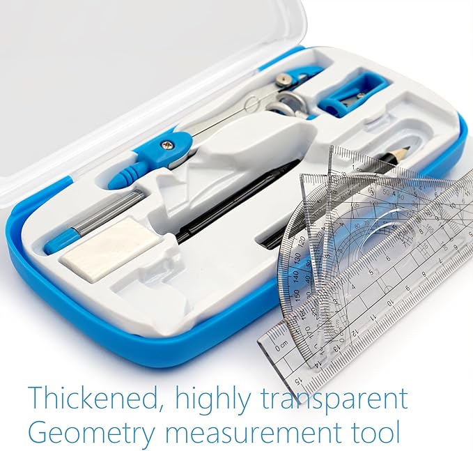 - Akuoly Drafting Compass Kit Starter Math Set Featuring Geometry Compass, Protractor, Set Squares, and Ruler – for School Graders Math Study with Every Piece Compact in Carrying Case, Classic Blue