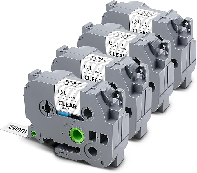 24mm 0.94 Laminated Clear TZe151 TZ Tape Conpatible for Brother TZe-151 P Touch Label TZe Tape 24mm 1 Inch Label Maker Tape for Brother PT-D610BT PT-D600 PT-P710BT PT-P700 PT- P910BT, 4-Pack