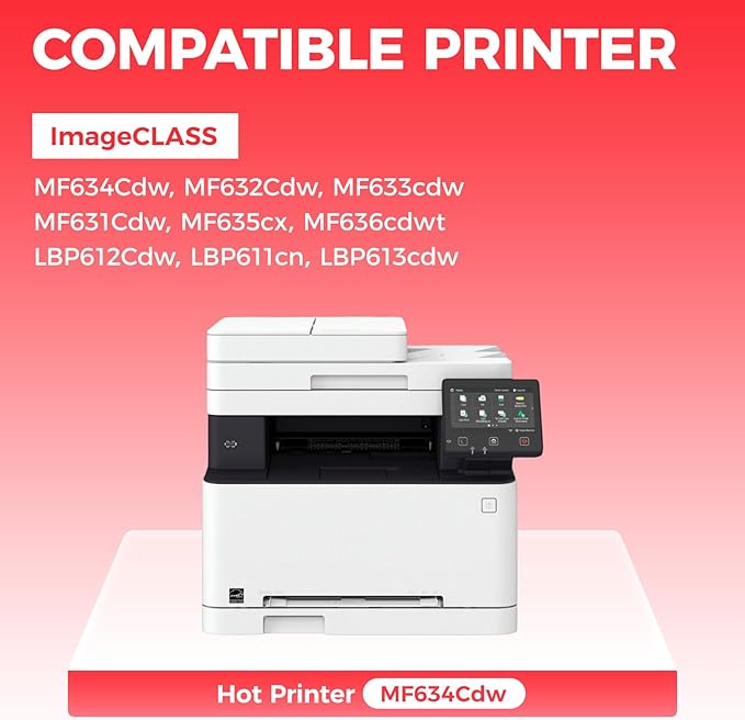 - Compatible Printers: Compatible with Canon Color imageCLASS MF634Cdw MF632Cdw MF633cdw MF631Cdw MF635cx MF636cdwt LBP612Cdw LBP611cn LBP613cdw Series Printer.