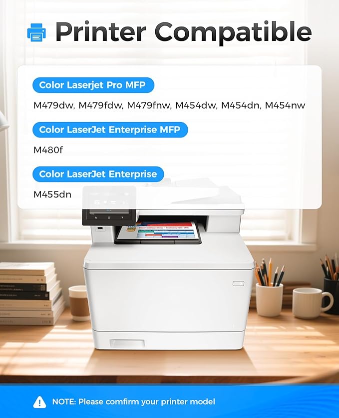 - Compatible Printers: Compatible with HP Color Laserjet Pro MFP M479dw M479fdw M479fnw M454dw M454dn M454nw, Color LaserJet Enterprise MFP M480f Color LaserJet Enterprise M455dn Series Printer.