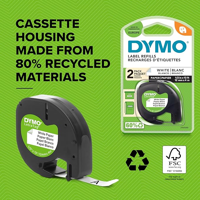 - Includes: LetraTag 100H+ Label Maker and Label Starter Roll (Black Paper, 12 mm x 3 m), 4AA batteries