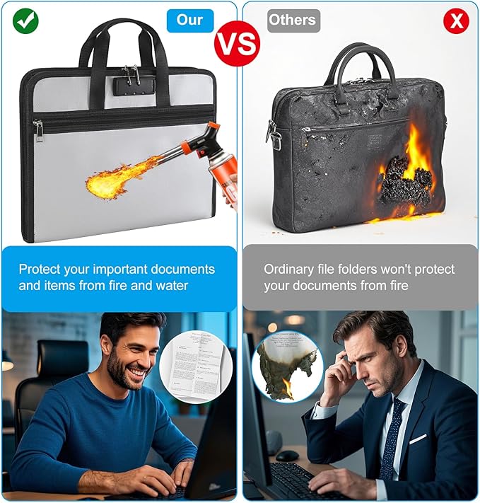 - Extra front zipper pocket: Our fireproof extended folder has an extra front pocket (14.2 x 7.7 inches), which is perfect for storing cash, passports, letters, and other frequently used small items, making it easy to access at any time! There is no need to open the entire bag to find what you urgently need