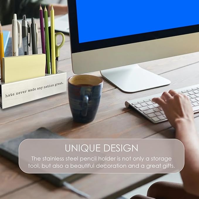Hate Never Made Great, Racial Equality Anti Racism Pen Holder, Human Rights, Social Activist Gifts Desk Decor Stainless Steel Pencil Holders WCC62