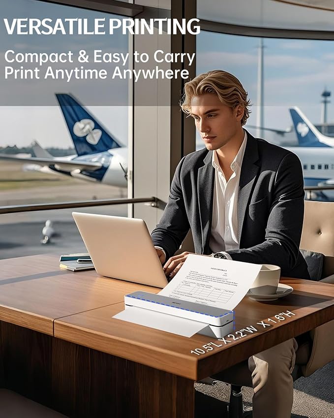 - Ultra Light Travel Printer: At just 1.1lb (526g) and 1.6 inches thick, this portable thermal printer fits easily into your backpack or work bag. Whether you're on a business trip, campus, café, or coworking space, print contracts, lecture notes, or documents on the go—no desk needed!