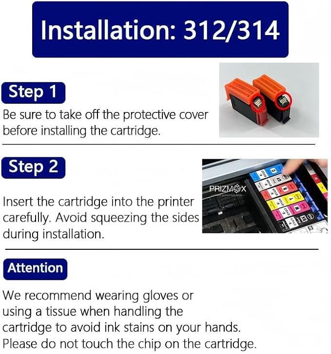 - High Page Yield: 500 Pages per 312XL black ink cartridge, 830 Pages per 314XL 312XL color ink cartridge (based on 5% coverage)