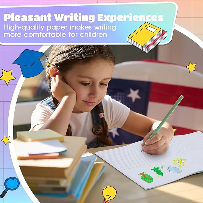 - Quality Paper Material: made of quality paper material, our primary notebook come with soft covers and thick white pages that are sturdy and tear resistant; This ensures long term usage and pleasant writing experiences, prioritizing safety and quality for both kids and students