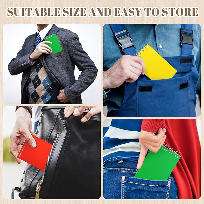 - Top Spiral Bound: each pocket memo pad adopts top spiral binding, so the page can lay flat for a more comfortable writing condition for right or left handed users; And the unobstructed spiral binding design won't hang up on clothes or backpacks, very thoughtful