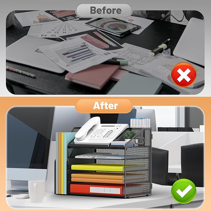 - Durable Steel Mesh Construction: Made from high-quality steel mesh material, this file organizer for desk is designed for long-lasting use. The steel mesh not only offers a sleek, modern appearance but also provides strength and durability for your office needs. It's a stylish addition to your office that combines functionality and aesthetics