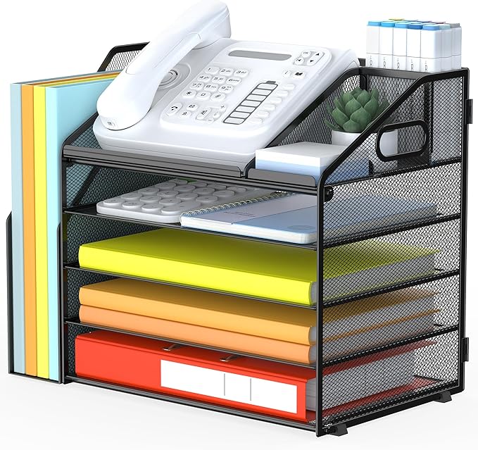 - 5 Tier Organization with Pen Holder: This Black desk organizer boasts a 5-tier design for efficient sorting of your papers, letters, and other office supplies, along with a dedicated pen holder. It's perfect for maintaining a tidy and uncluttered workspace. The desk file organizer is an essential desk accessory that contributes to an orderly and professional atmosphere