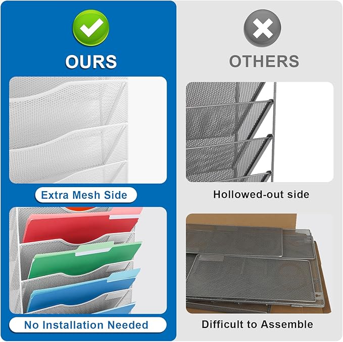 - Stable Structure: Elegant mesh metal construction with powder coat finish file pocket that take full advantage of your vertical space and keep your desk clean