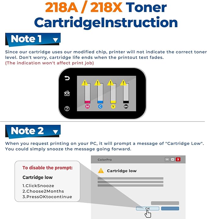 - These 218A toner do NOT come with chip, please transfer the OEM 218A/218X chip to these unchipped compatible 218A toner cartridges 4-pack. This way to reducing e-waste and extending the lifespan of original chips.