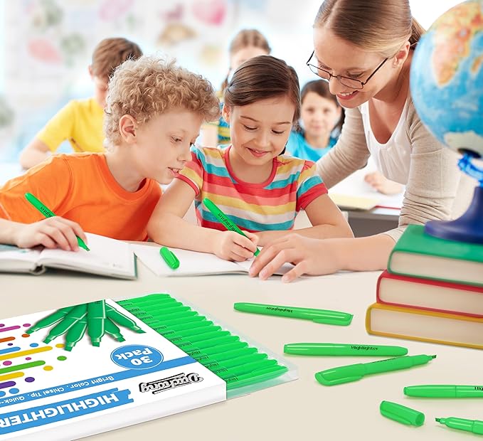 - 30 Fluorescent Green Highlighter: 30 packs highlighters bulk to help you classify different topics or concepts.Perfect for color coding and highlighting favorite book passages or notes. If you are looking for smooth, pretty, light fluorescent green highlighters, then these will not disappoint.