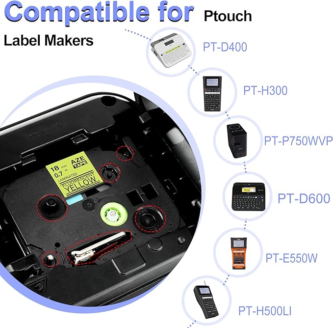 - Package Included: 2 pack KCMYTONER compatible for ptouch TZe-C41 TZ-C41 TZeC41 TZC41 laminated label maker tape; color: black text on fluorescent yellow tape; size: 18mm (3/4 inch) x 5m (16.4 feet)