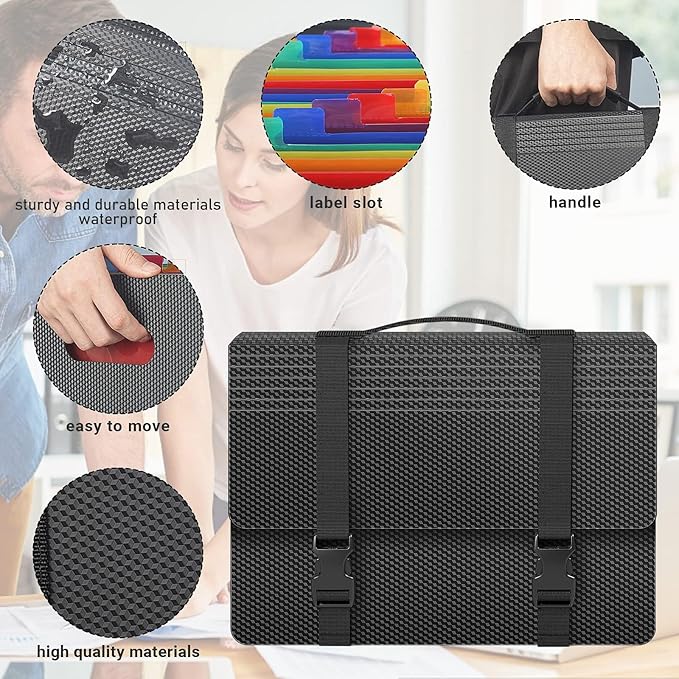 - 【Super Portable and Secure Closure】Expanding file folder is designed with adjustable sholder straps and handles, offering large capactiy and portability,The Nylon dual-shoulder staps and sturdy ABS buckles provide good bottom support and expandability. It ensures a spacious and secure using space whether stationary or on the move.