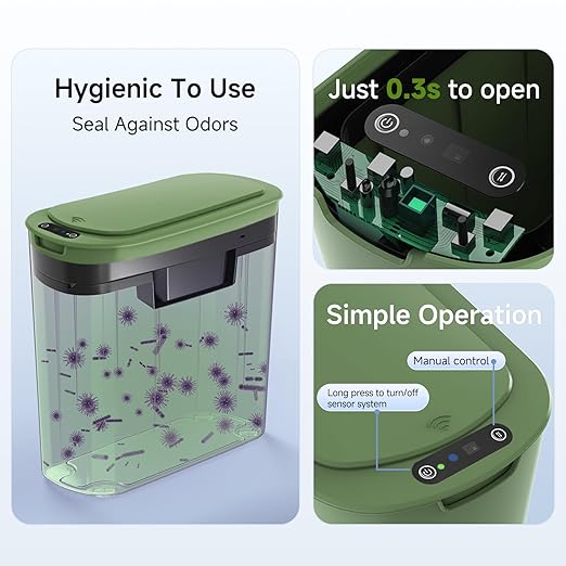 - 【Touchless Convenience】Simply place your hand above the infrared motion sensor, the lid will stay open, and will automatically close if no object movement is detected within 5 seconds. Requires 2 AA batteries (not included)