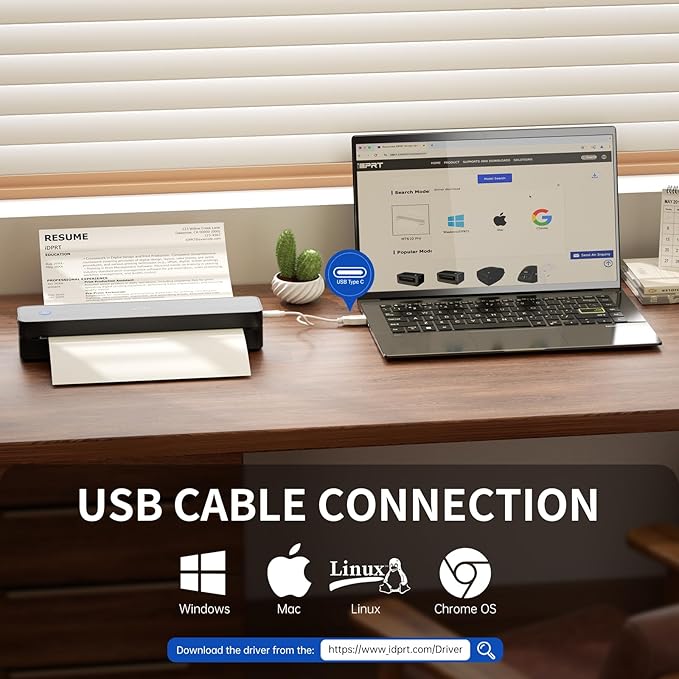 - Inkless Printing Technology: This advanced bluetooth printer utilizes thermal technology, no ink cartridges needed! With a resolution of 203 DPI, clear printing and high speed—completing a US Letter/A4 page in just 4-6 seconds. ( Note: Supports black-and-white printing exclusively and requires thermal paper. )