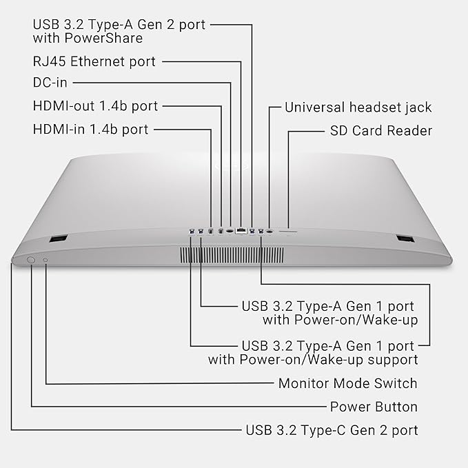 Dell 27 All-in-One Desktop ec27250-27-inch FHD (1920 x 1080) Display, Intel Core 5 Processor 120U, Intel Graphics, 16GB DDR5 RAM, 512GB SSD, Windows 11 Home, Onsite Service - White