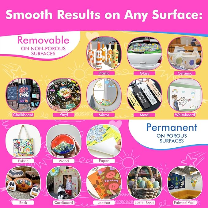 - Safe for Kids:The washable Chalk markers are safe for children of all ages.They are noiseless,odourless,water-based,non toxic and dust free.Fun and Creativity go hand in hand.Let your kids unleash their creativity and create works of art with our super cool markers!