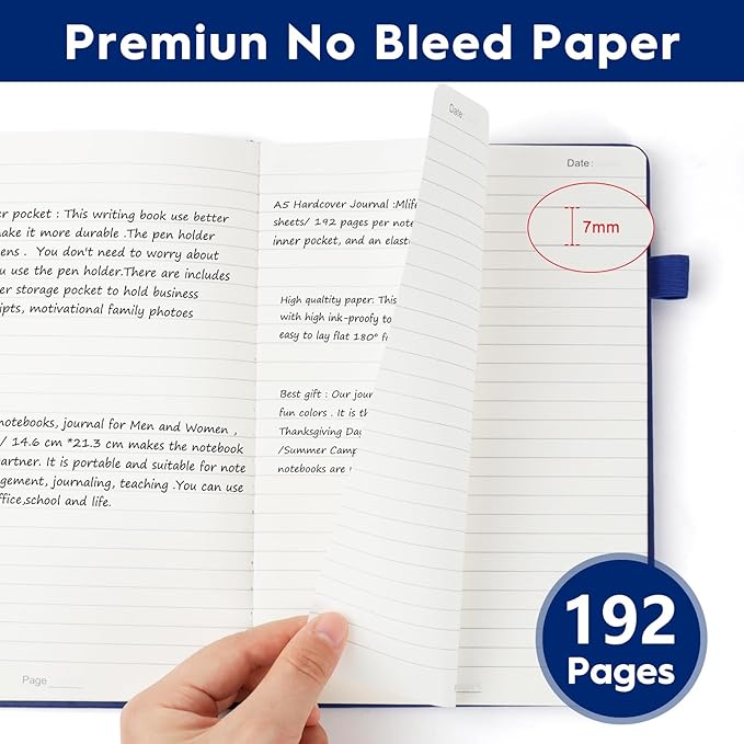 - 【Ample Writing Space-192 Pages】This A5 notebook measures 5.7 x 8.3 inches (145 x 212 mm) and features 192 pages (96 sheets) of college-ruled paper with 7mm spacing. Perfect for extensive note-taking, journaling, or planning, making it an ideal notebooks for work or journal for women.