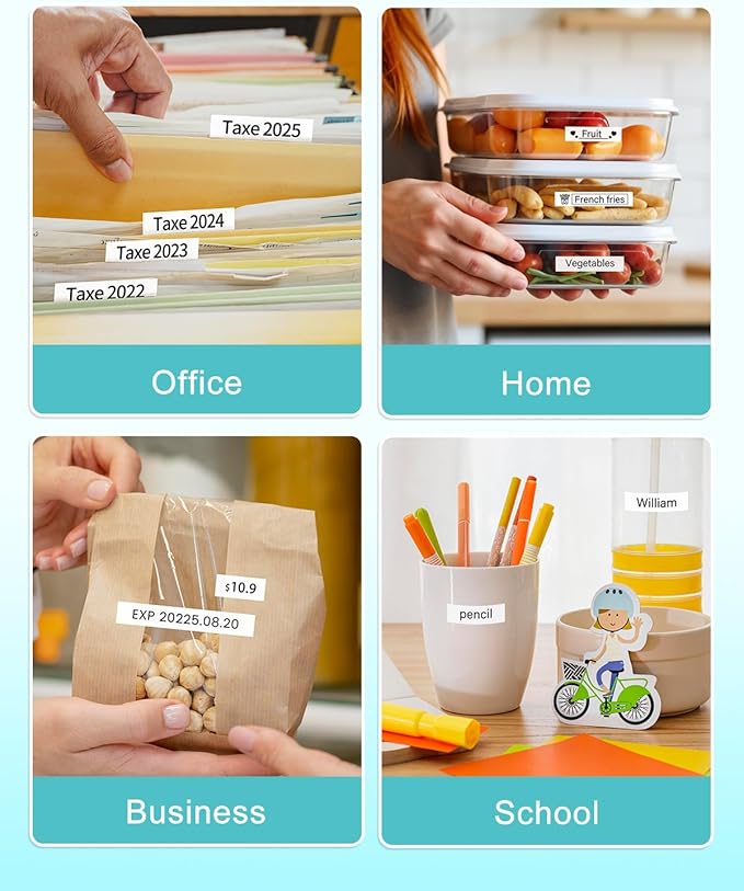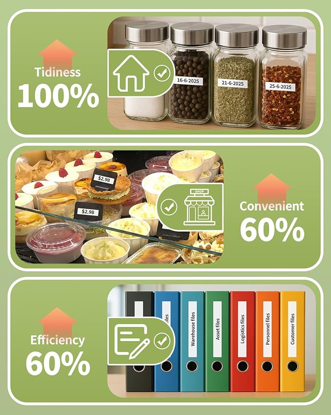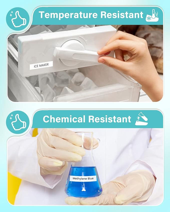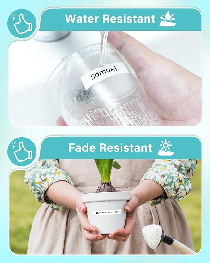 - Durable laminated ptouch tape:Withstands water, fade, sunlight, and temperature (-30°C to 120°C) for long-lasting labels that stay well at indoor & outdoor
