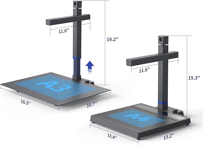 - Up to A3 Scan Size: By stretching the control lever, the maximum scanning area of the scanner can be adjusted from A4 (8.27''*11.69'') to A3 (16.5'' x 11.7''). Scan your documents better with a professional working surface and A3 scanning mat