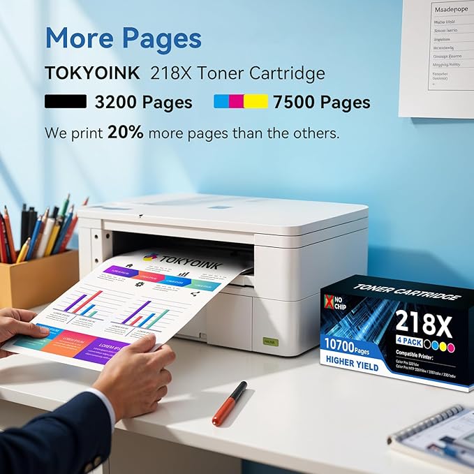 - Warm Tip: TOKYOINK 218X High Yield compatible toner cartridge 4 Pack do NOT come with chip, please remove the OEM 218X or 218A CHIP and install it into our new 218X High Yield toner cartridge