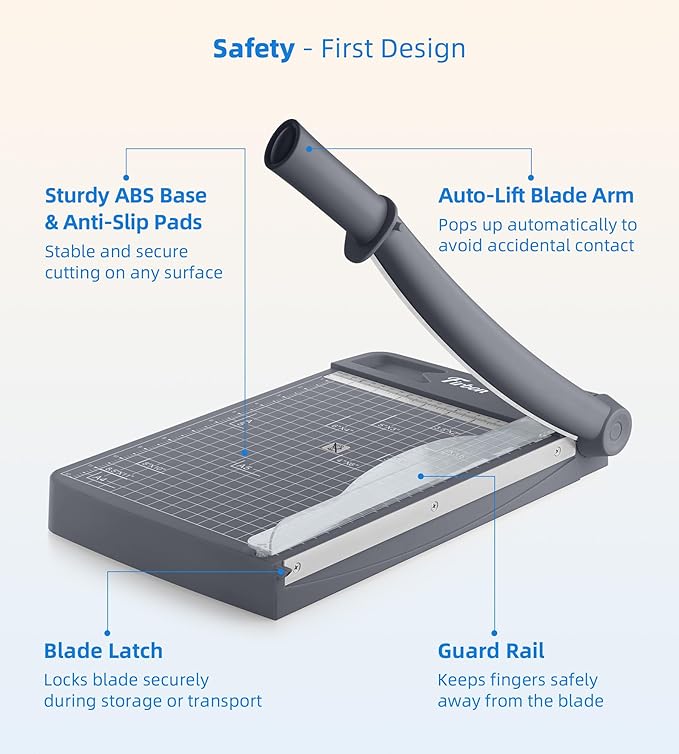 Firbon 12" Guillotine Paper Cutter, Heavy Duty 12-Sheet Capacity Trimmer for Cardstock, Photos, Scrapbooking, Office, Classroom, Studio (Gray)