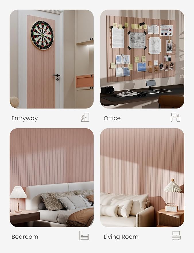 Bumusty Large Cork Board Alternative-47 x35 Felt Bulletin Board Tiles, with 30 Pushpins, 70 Adhesive Tabs, 12-Pack Slat Wall Paneling, Cork Boards for Office Push Pin Board Felt Board-Coral