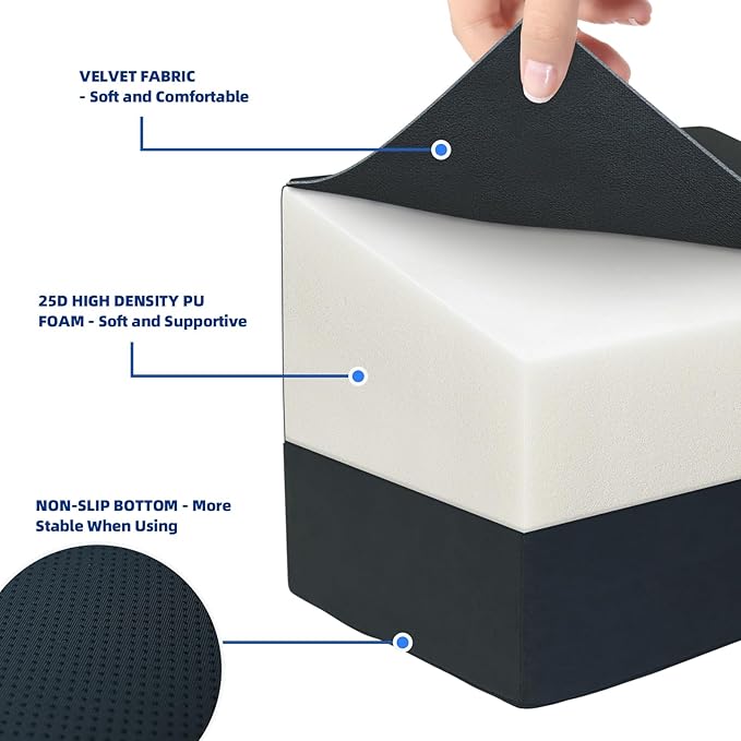 - [SOFT & SUPPORTIVE UNDER DESK FOOTREST] Crafted with high-quality 25D high-density foam, this under desk foot stool offers the perfect balance of support and softness, resisting collapse and deformation. The soft short-pile fabric cover is removable and machine-washable, making it a great choice for households with pets.