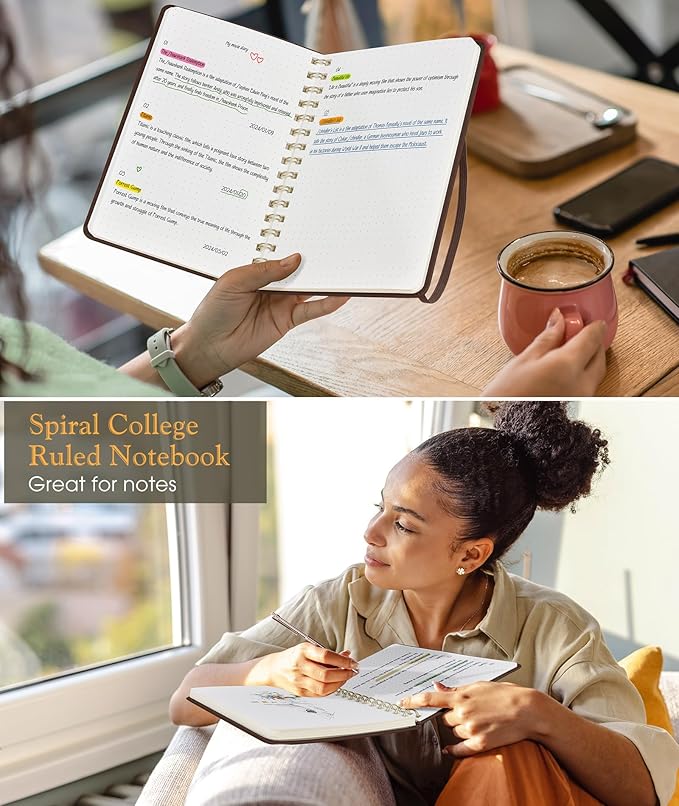 Dotted Spiral Journal Notebook, A5 Hardcover Spiral Journals for Women Men, 100 GSM Dot Grid Paper Notebooks, 150 Pages Spiral Bullet Dotted Notebook for Writing Note Taking 5.75" x 8.38", Dark Brown