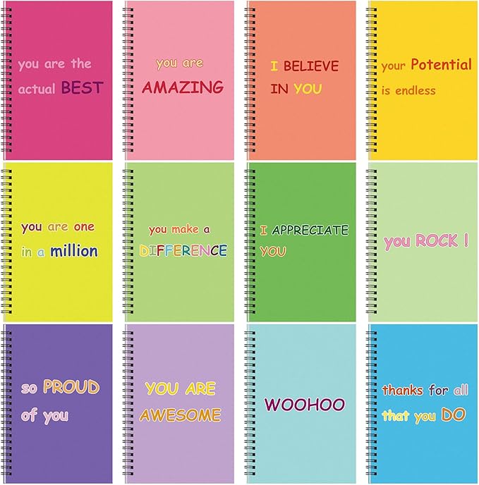 - Rich in Quantity to Use: the package comes with 12 pieces of spiral notebooks in A5 size, each measures about 8.3 x 5.7 inches, enough to meet your daily work and study needs; There are 12 different color covers, simple and fashionable, rich colors add fun to your study and work
