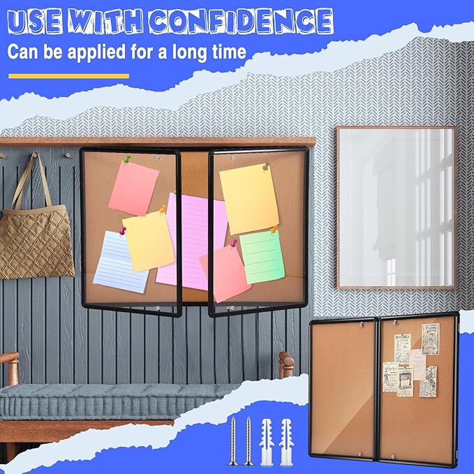 - Wide Application: the bulletin board cabinet is suitable for schools, offices, shops, homes, apartments, hospitals, dormitories, classes and other public places, and can be applied for multiple purposes, such as posting notice and announcements, displaying artwork or photos, and presenting public information