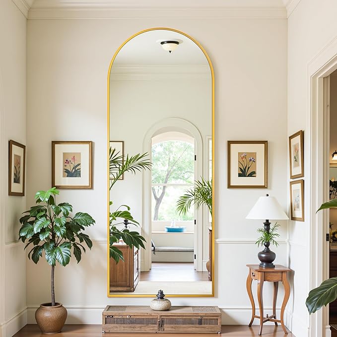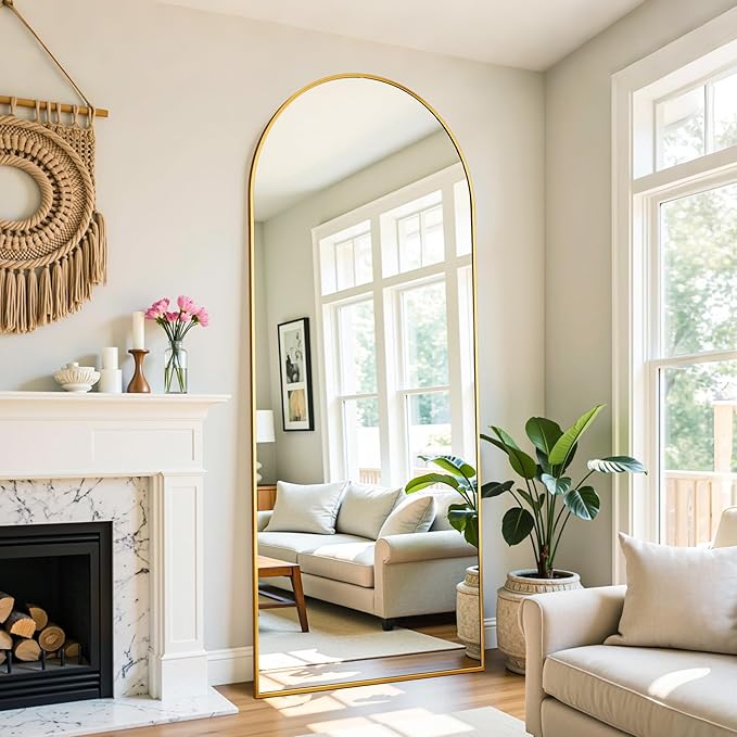 Full Length Mirror, 71"x26" Oversized Floor Mirror Freestanding, Full Body Mirror Floor Standing Mirrors with Stand, Hanging Mounted Mirrors for Bedroom Living Room, Gold, Arched Style