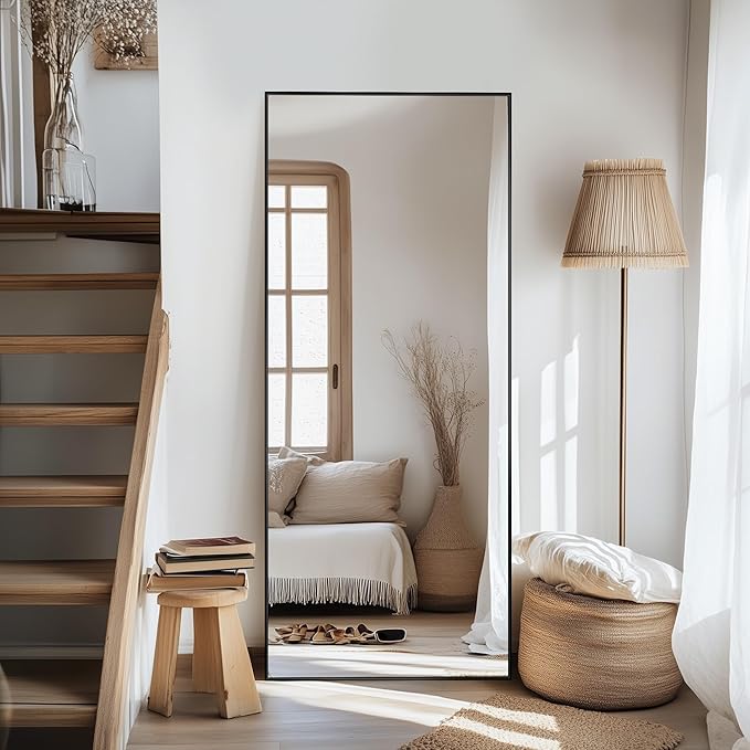 - Mirror Full Length: This full-length mirror measures 58 inches in length x 18 inches in width, which not only provides you with enough coverage to check your outfit from head to toe, but also ensures a multi-angle display to create an illusion of more space
