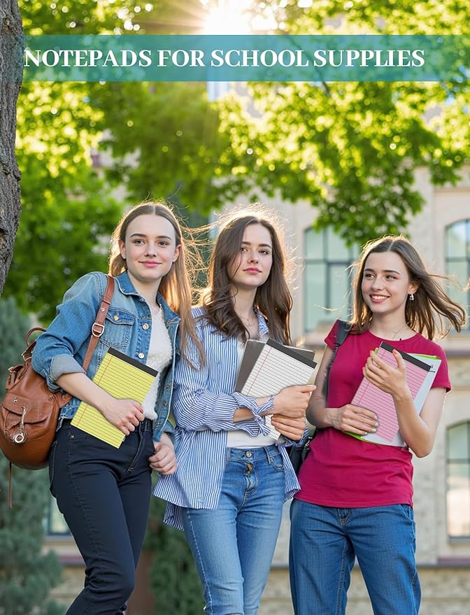 - [College Ruled Layout for Clarity]: Designed with a colored legal pads 5x8 college ruled 9/32" (7mm) spacing, these notepads 5x8 provide ample space for neat and organized writing. Writing pads 5x8 widened top margin is included for labeling topics, dates, or subjects, enhancing your note-taking experience. The colored small legal pads meet the demands of both academic and professional environments.