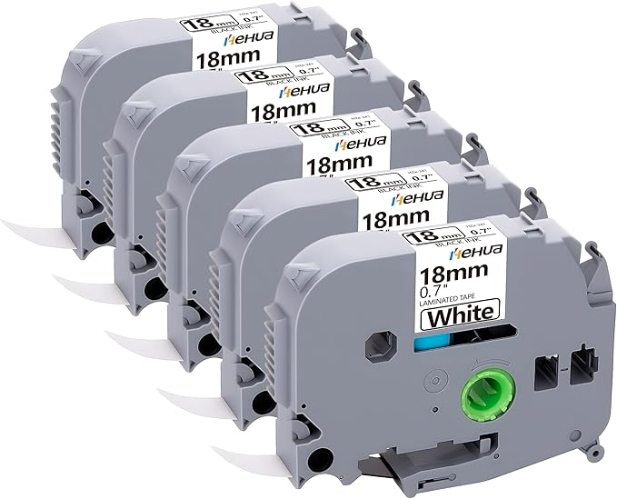Hehua 18mm 0.7 Laminated White TZ Tape Compatible for Brother Label Maker TZe241 TZ-241 TZ241 TZe 241 3/4 x 26.2ft Label Tape for Ptouch PT D400 D600 D610BT P710BT P750W, Black on White, 5 Pack