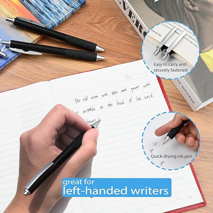 - 4-PREMIUM QUALITY INK: The 50 black pens feature a fast-drying, ink-resistant design that prevents ink from bleeding through the thin paper of notebooks and organizers. The ink will not bleed through the paper and will not smudge or fade. The ink is long-lasting and refillable for reliable writing, also suitable for left-handers.