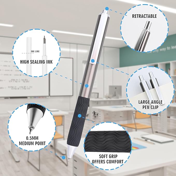 - 4.Black ink and durable construction: fade-resistant water-based inks meet ISO standards for durability. The stainless steel nib and shatterproof ABS barrel withstand drops, making these pens ideal for backpacks, lab coats, or factories.