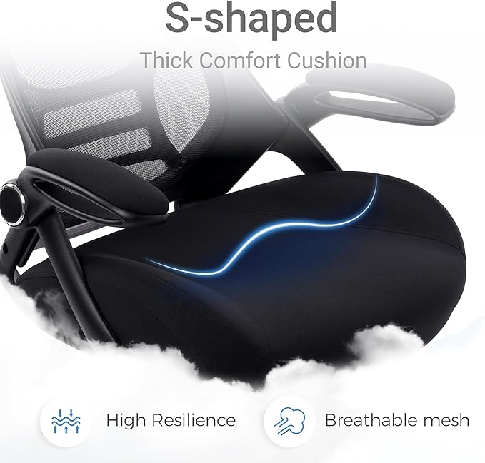 - 【Adjustable Office Chair】Our ergonomic office chair, designed to provide comprehensive assistance for your head, back, hips, and arms. Tailored lumbar support ensures your comfort and well-being. Suitable for people of about 5'5" to 6'2". Easily adjust seat height, backrest, and flip-up arms to cater to diverse needs, offering comfortable support during extended periods of sitting