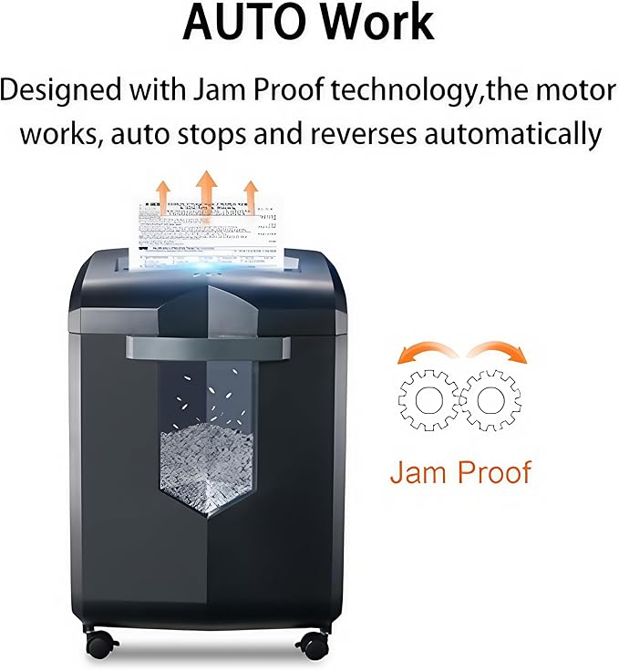 - Auto Start & Reverse: Auto - start/stop and auto - reverse functions prevent paper jams. Overheating and overload protection tech ensures long - term use and extends the shredder’s lifespan. Simply press the power switch and insert paper into the slot, and it runs automatically.
