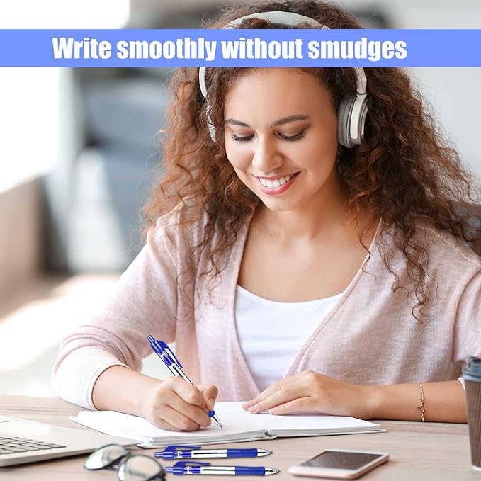 - Comfortable Grip: Each retractable ballpoint pen is designed with a soft rubber-textured grip that offers a secure and comfortable hold, allowing you to write for extended periods without experiencing hand fatigue.